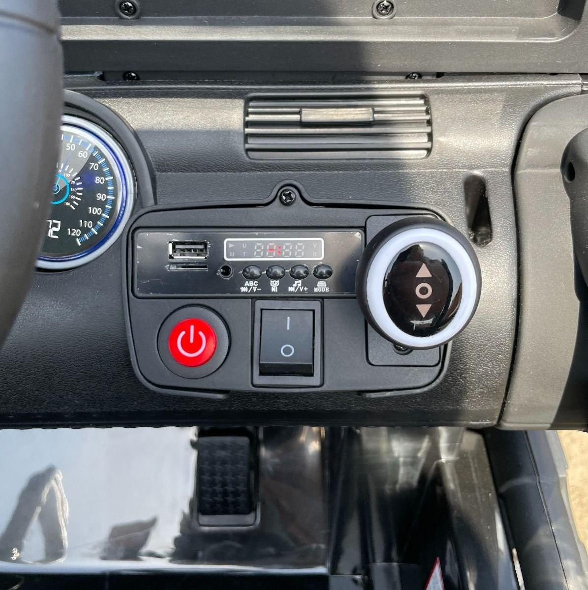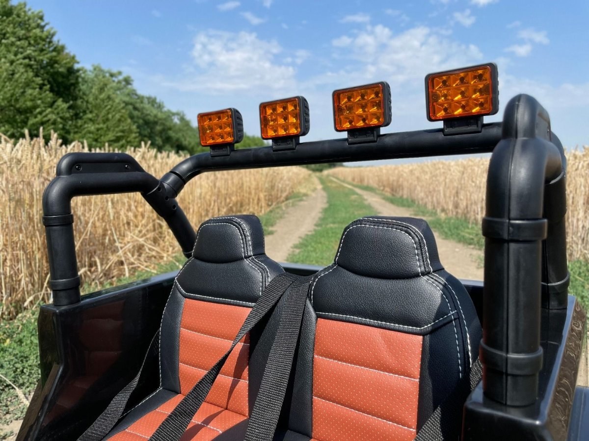 Autíčko je taktiež vybavené svietiacími svetlami. Inovovaná audio jednotka s modernou muzikou so vstupom USB/SD/AUX. Pre bezpečnosť dieťaťa je na sedačke nastaviteľný bezpečnostný pás.