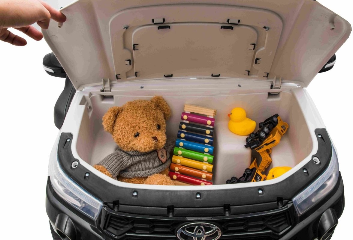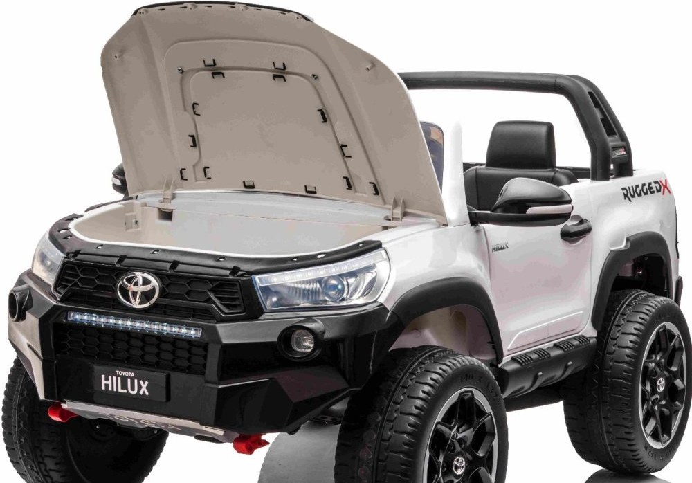 Elektrické autíčko TOYOTA HILUX 4X4Autíčko Toyota Hilux má moderný vzhľad, otváracie dvere, otváracie plato a kapotu, originálne znaky a logo, kvalitné materiály a spracovanie. Má dve sedačky, čím je vhodný pre dve deti.