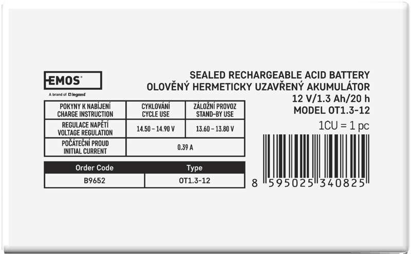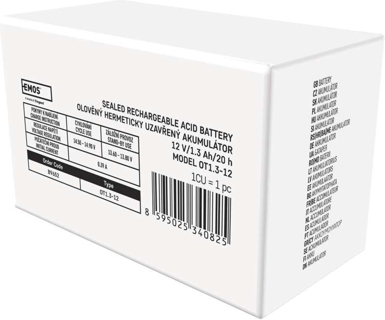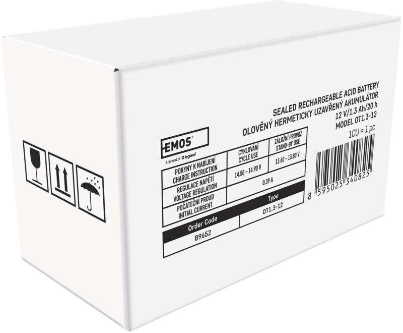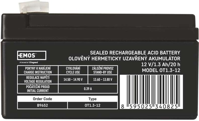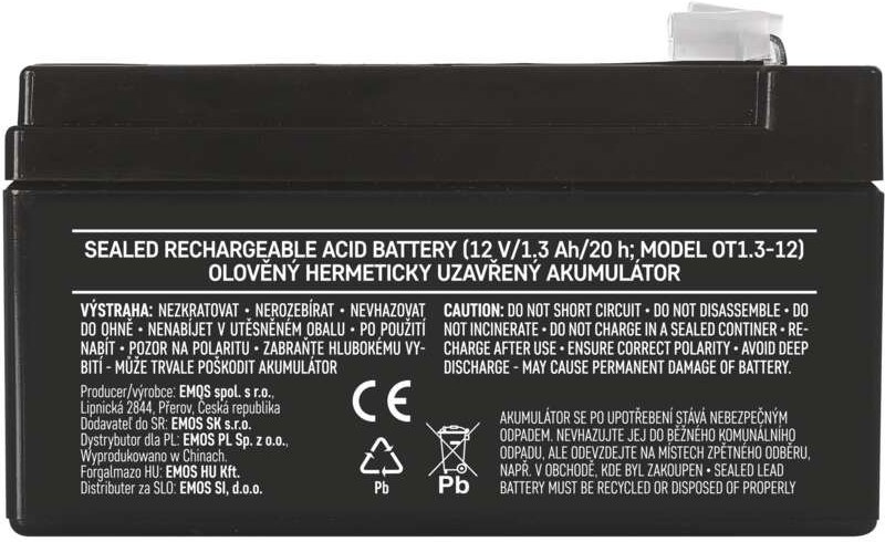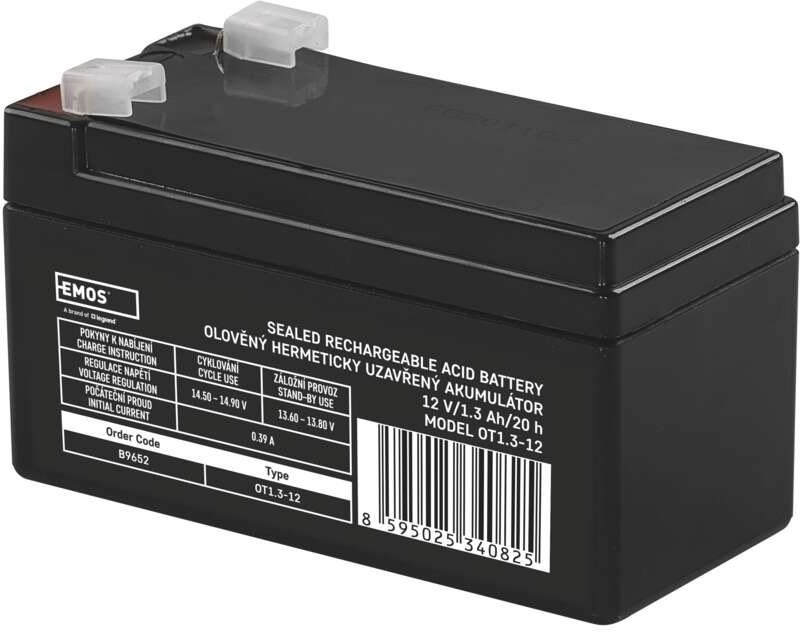 Emos B9652, olovený akumulátor 12 V/1,3 Ah, faston 4,7 mm