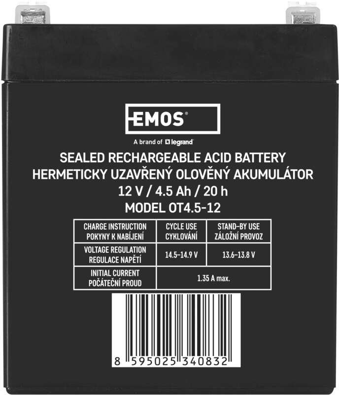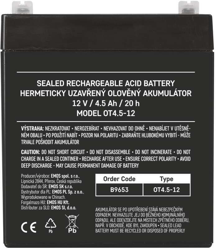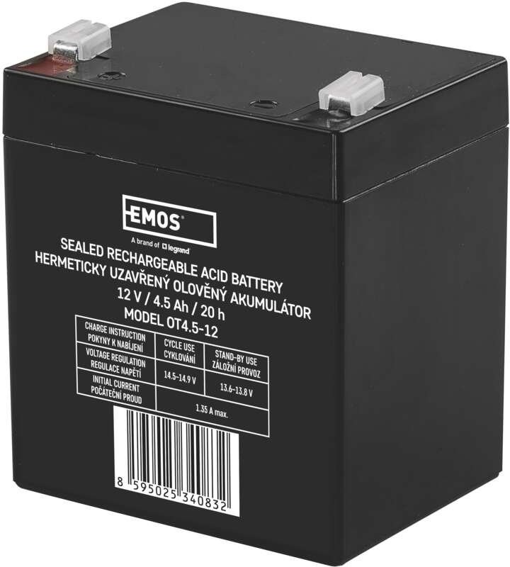 Emos B9653, olovený akumulátor SLA 12V / 4,5 Ah, faston 4,7 mm