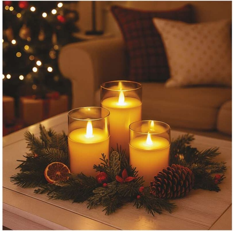 Emos DCCW05, LED dekorácia - 3x vosková sviečka v skle, 6x AA, teplá biela, časovač