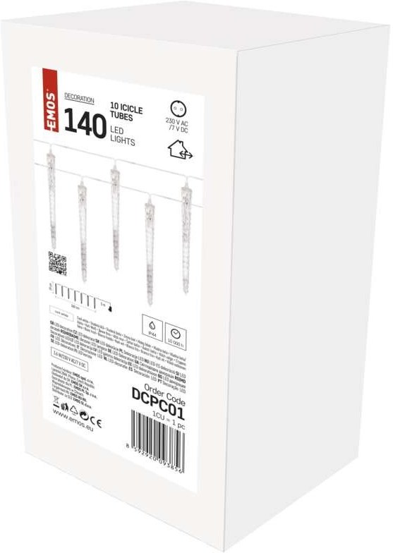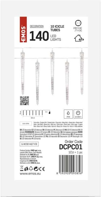 Emos DCPC01, LED vianočná girlanda, 10x cencúľ, 3,6 m, studená biela