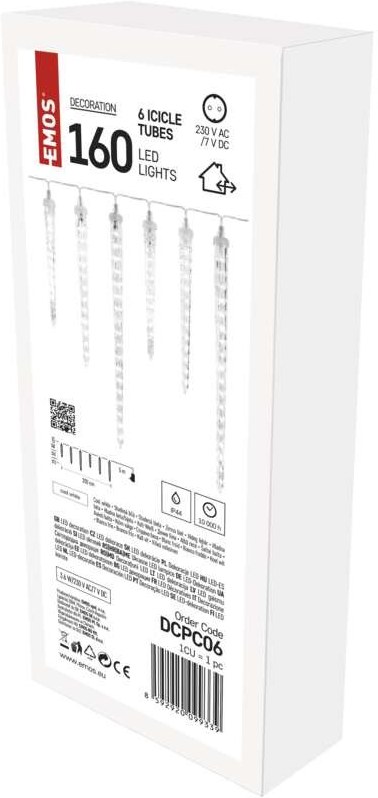 Emos DCPC06, LED vianočná girlanda, cencúle, 6 ks, 3,6 m, studená biela