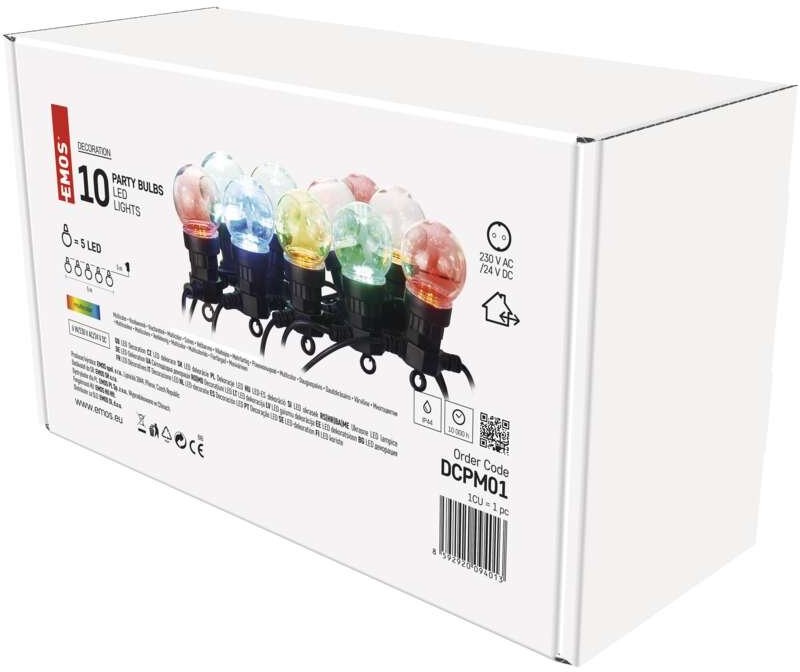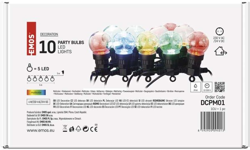 Emos DCPM01, LED svetelná reťaz, 10x párty žiarovky, 5 m, multicolor