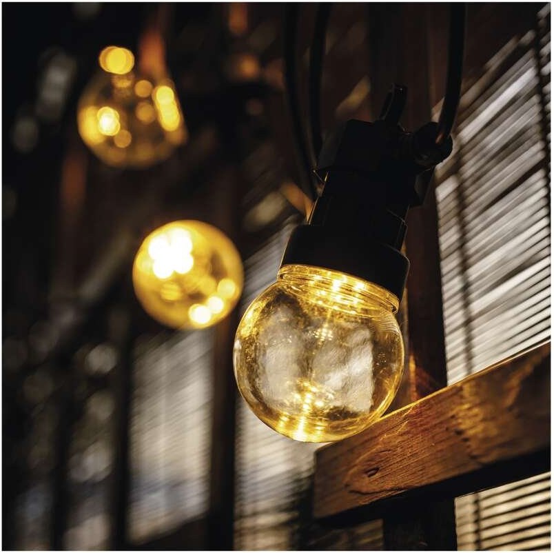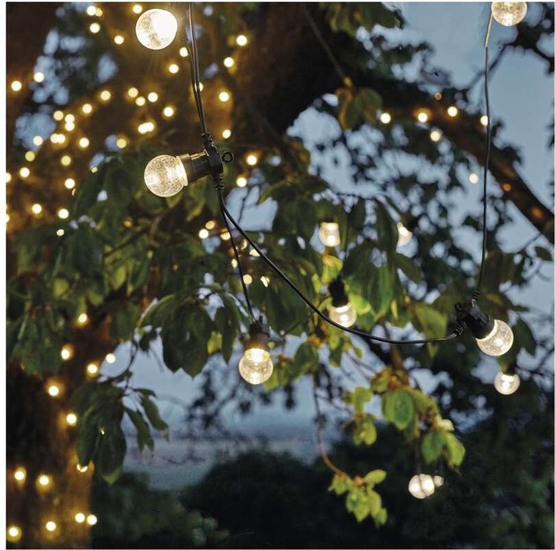 Vonkajšia svetelná reťaz s párty žiarovkami žiariacimi teplou bielou farbou, dodáva útulnú atmosféru pri posedení na balkóne, terase, vonkajších oslavách, svadbách, kultúrných podujatiach atď.. Pri správnom počte reťazí a žiaroviek dokáže asistovať tradičnému osvetleniu a urobiť tak každý deň výnimočným. Tento typ reťaze sa čoraz častejšie používa ako štýlové osvetlenie v záhradách alebo interiéroch reštaurácií, kde vkusne ozdobí inak obyčajný priestor. Vďaka dlhému 5 m napájaciemu káblu je zapojenie do elektrickej siete hračkou.