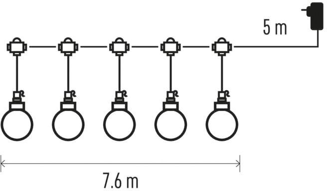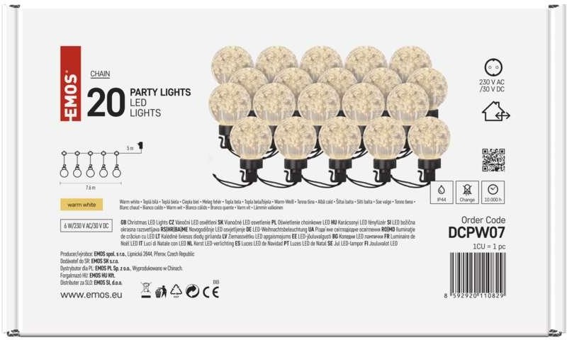 Emos DCPW07, LED svetelná reťaz, 20x párty žiarovky, 7,6 m, teplá biela