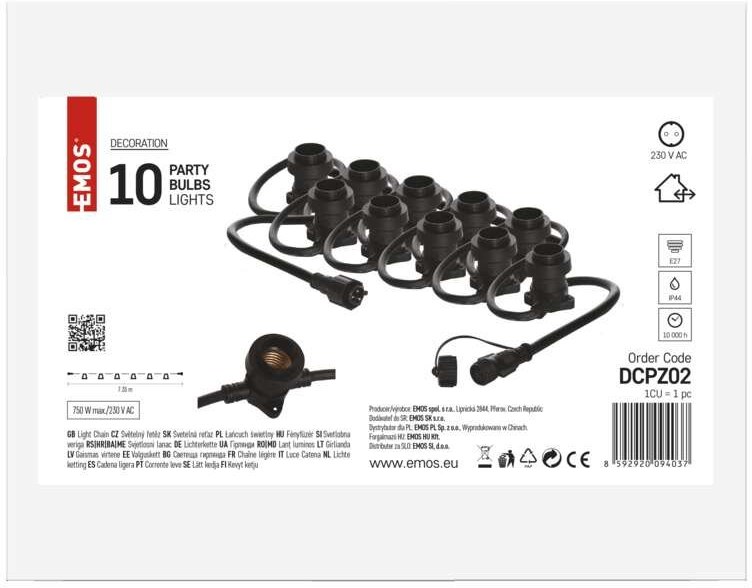 Emos DCPZ02, spojovacia svetelná reťaz na 10 žiaroviek E27 bez prívodu, 7,35 m, vonkajšia aj vnútorná