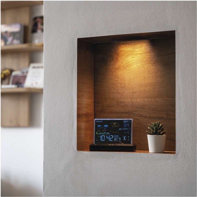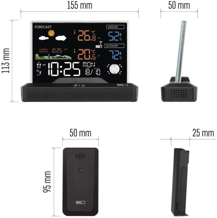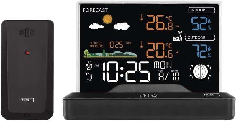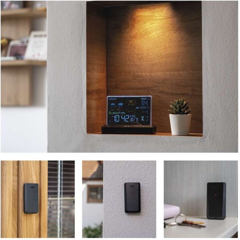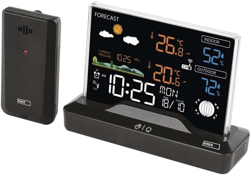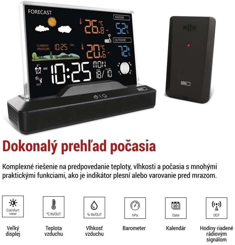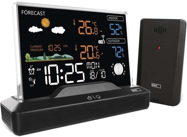 Moderný dizajn bez rámčeka, lepší kontrast a najtmavšia čierna farba. Farebný displej LED VA zobrazuje všetky dôležité informácie, aby ste boli informovaní nielen o vnútornej a vonkajšej teplote a vlhkosti, ale zobrazuje aj 12 fáz mesiaca, predpoveď počasia, tendencia tlaku alebo pamäť min. a max. nameraných hodnôt teploty. S našou meteostanicou budete mať informácie o počasí vždy po ruke.