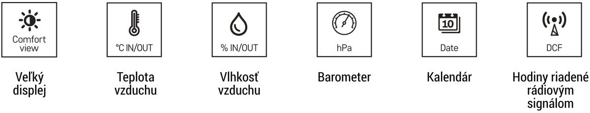 prémiová elegantná bezrámová meteostanica, meria vonkajšiu a vnútornú teplotu a vlhkosť a zobrazuje aj čas, dátum, minimálnu a maximálnu teplotu, fázy mesiaca, barometer na meranie tlaku vzduchu