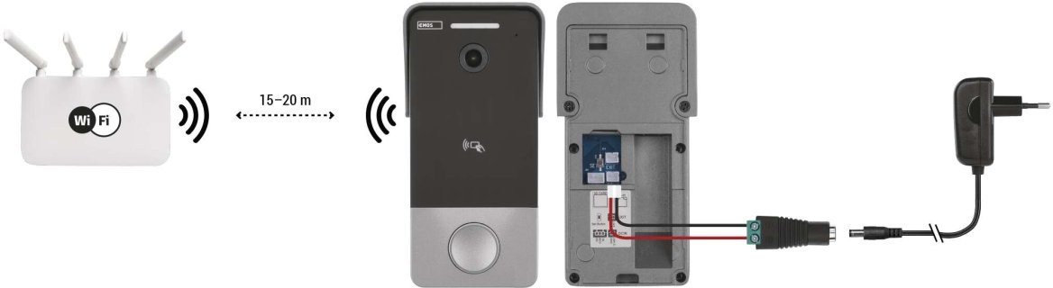 Prenos dát cez Wi-Fi - veľmi malý dosah signálu kvôli kovovému telu videozvončeka (15-20 m v otvorenom priestore)