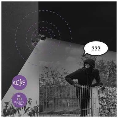 Svetlo možno aktivovať aj manuálne a odradiť tak potenciálneho vandala alebo zlodeja od návštevy vášho majetku. Nestačí? Aktivujte sirénu ukrytú v tele kamery s hlasitosťou až 105 dB.