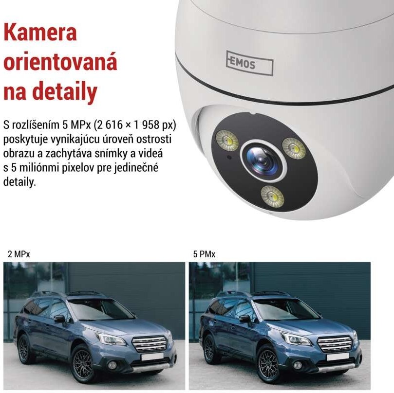 Vonkajšia inteligentná kamera 5 MPx poskytuje vynikajúcu úroveň ostrosti obrazu a zachytáva snímky a videá s 5 miliónmi pixelov pre bezkonkurenčné detaily. Toto pokročilé rozlíšenie umožňuje rozlíšiť dôležité detaily, ako sú tváre, poznávacie značky a ďalšie, aby ste zabezpečili bezpečnosť v okolí svojho majetku.