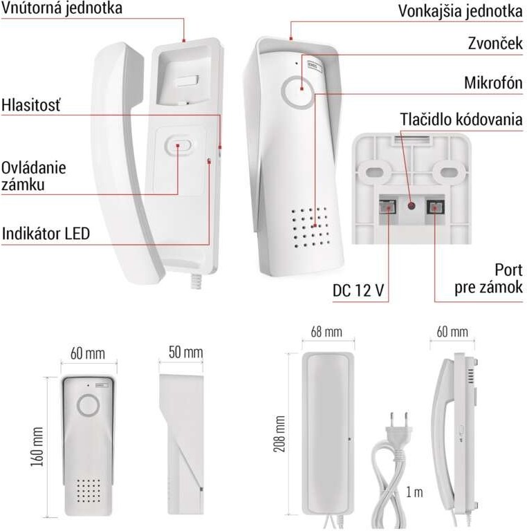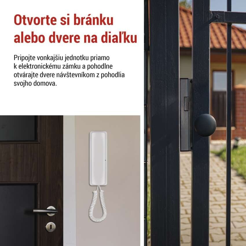 Pripojte dverovú jednotku s elektronickým zámkom - napr. model C0030, ktorý nájdete na našej webovej stránke - a môžete pohodlne na diaľku otvoriť dvere alebo bránu návštevníkovi. S touto súpravou audiotelefónu bude ovládanie vstupu do vášho domu rýchle, bezpečné a pohodlné.