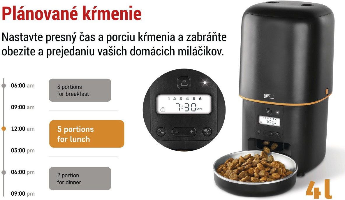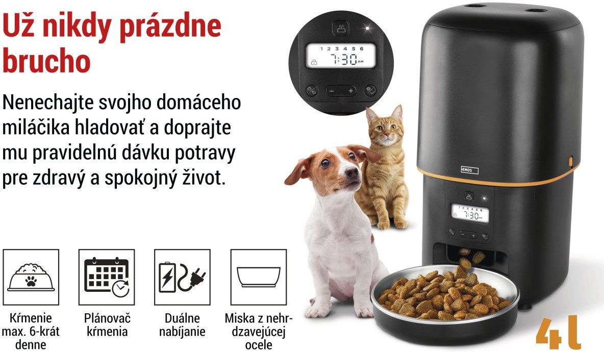 Emos H6001, Pet Care dávkovač krmiva, 4 l, čierny