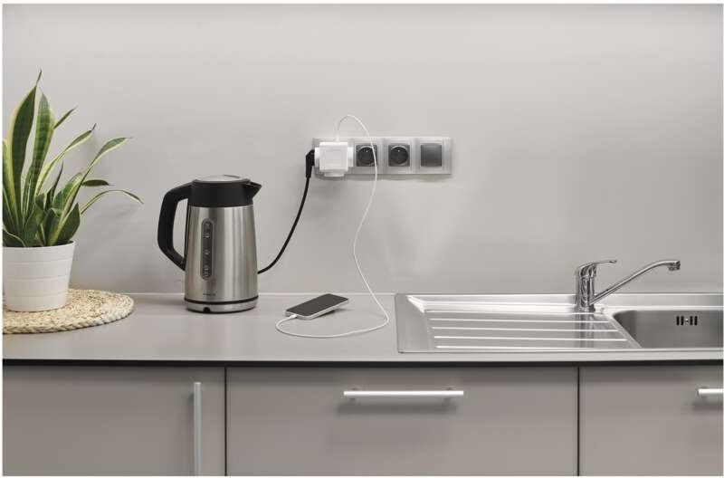rozbočovacia zásuvka 230V 3× guľatá, 2x USB-A nabíjačkaZobraziť viac