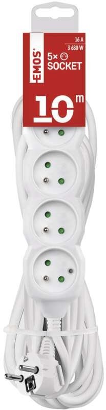 Emos P0510R, predlžovací kábel 10m, 5 zásuviek, PVC, biely, 1,5mm2