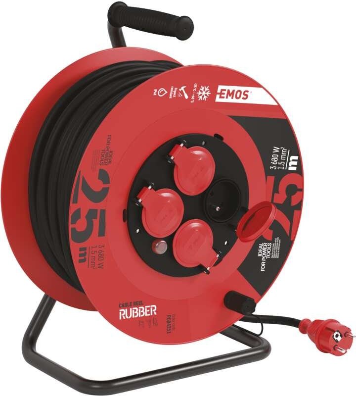 Emos P084251, gumový predlžovací kábel na bubne, 4 zásuvky, 25m, 1,5mm2