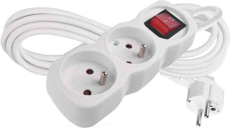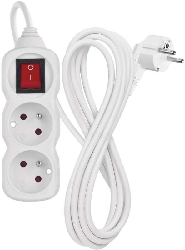 predlžovací kábel 3 m, 2 zásuvky, s vypínačom, biely, PVC, 1 mm2Zobraziť viac