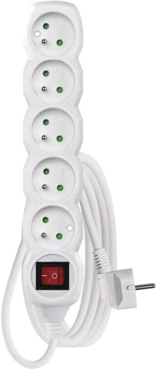 predlžovací kábel 3 m, 5 zásuviek, s vypínačom, biely, PVC, 1,5 mm2Zobraziť viac