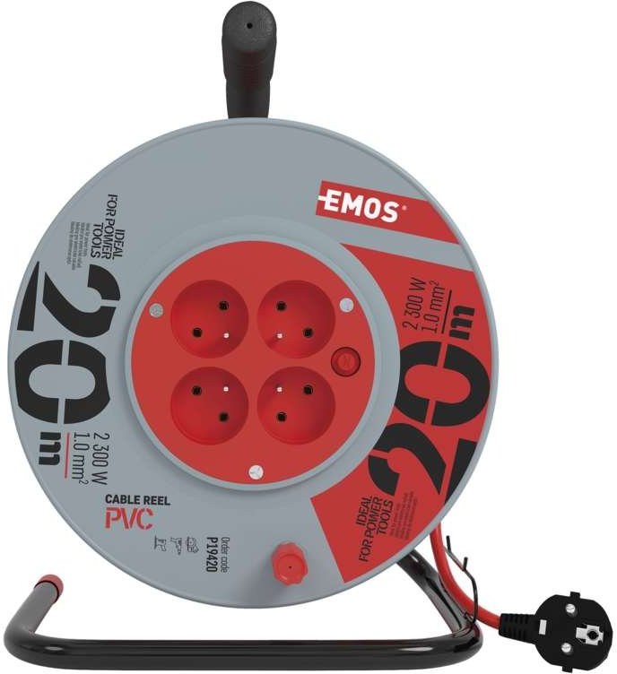 Emos P19420, predlžovací kábel 230V 4x zásuvka 20,0m na navíjacom bubne, oranžový, 1 mm2