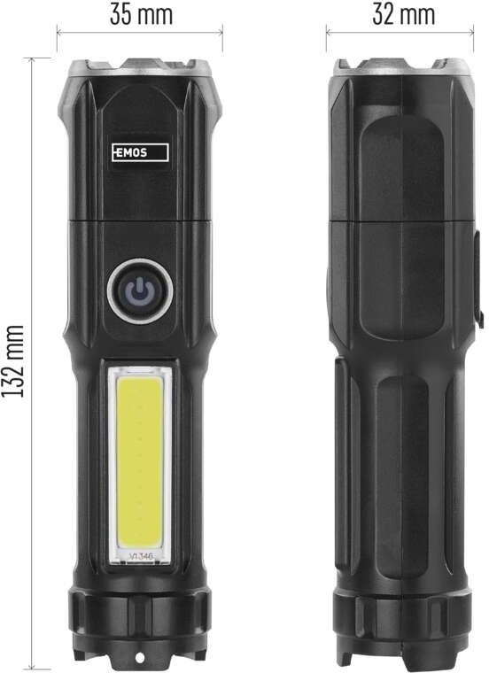 Emos P3214, nabíjateľná plastová LED/COB LED ručná baterka, 150 lm