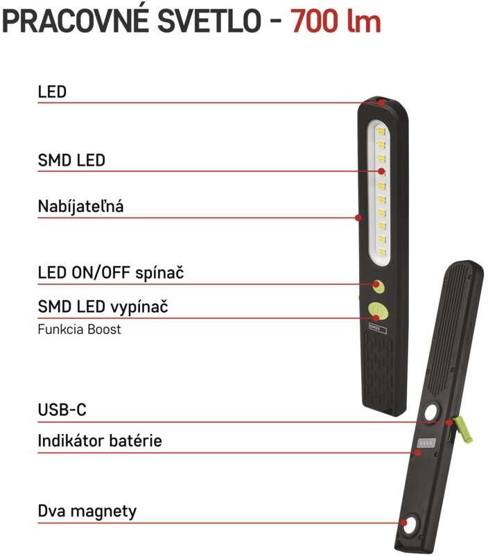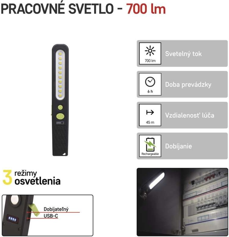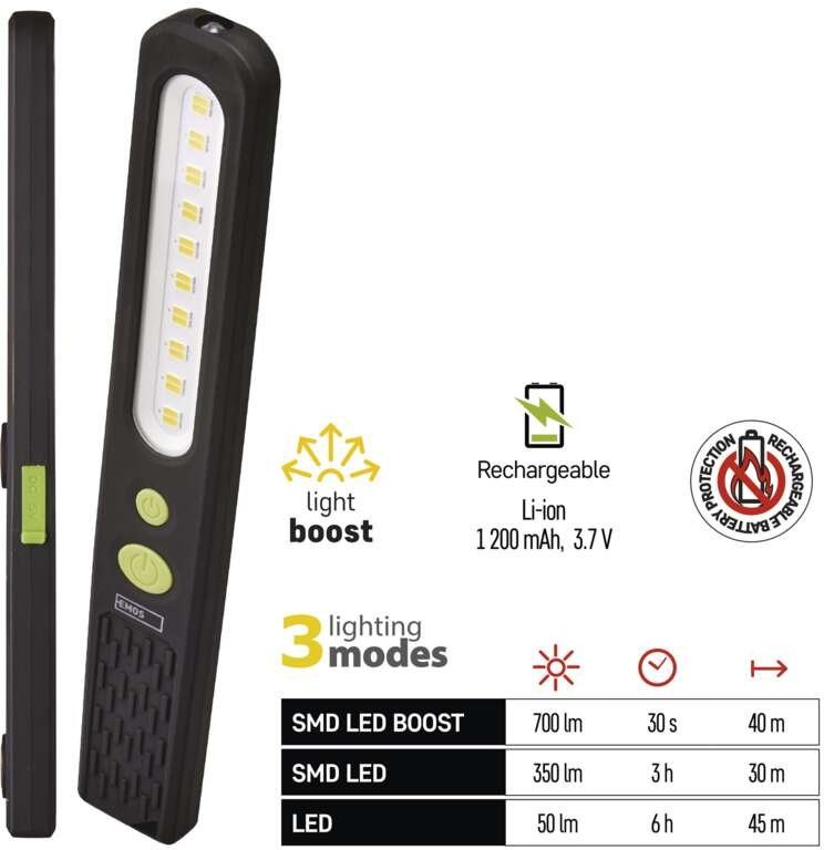 SMD LED + LED nabíjateľné svietidlo, 700 lm, 1200 mAhZobraziť viac