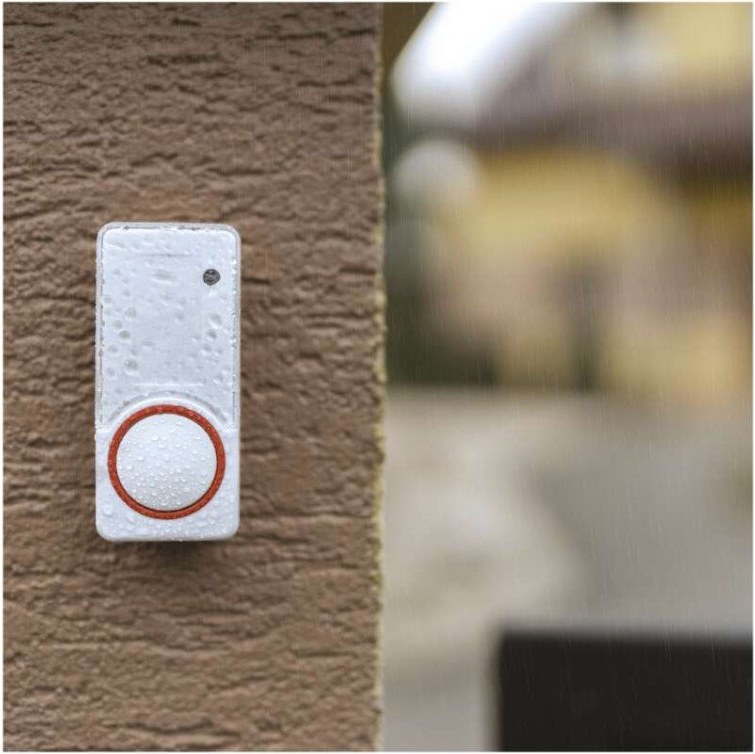 Tlačidlo zvončeka s krytím IP44 je plne pripravené aj na účinky nepriaznivého počasia. Môžete ho umiestniť na dvere alebo na bránu. Súprava má takzvanú funkciu "samoučenia" - zvonček má schopnosť generovať vlastný párovací kód, ktorý potom tlačidlo prijme a uloží do svojej pamäte. Vďaka tejto funkcii nie sú ovplyvnené susedné zvončeky. Zostavu tak možno rozšíriť o ďalšie tlačidlá.