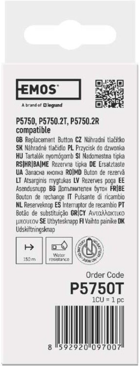 Emos P5750T, vonkajšie tlačidlo bez batérie pre domový bezdrôtový zvonček P5750