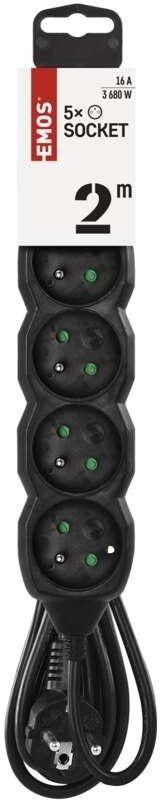 Emos PC0512, predlžovací kábel 2m, 5 zásuviek, PVC, čierny