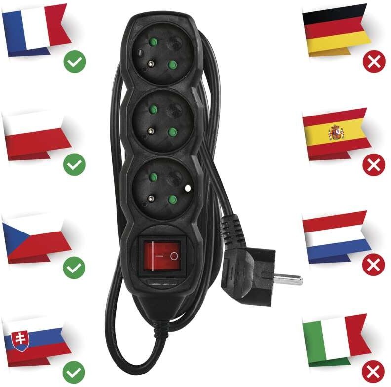 predlžovací kábel 2 m, 3 zásuvky, s vypínačom, čierny, PVC, 1 mm2Zobraziť viac
