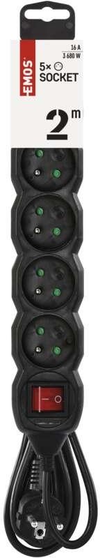 Emos PC1512, predlžovací kábel 2m, 5 zásuviek, s vypínačom, PVC, čierny