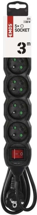 Emos PC1513, predlžovací kábel 3m, 5 zásuviek, s vypínačom, PVC, čierny