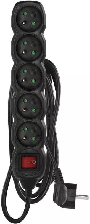 predlžovací kábel 3m, 5 zásuviek, s vypínačom, PVC, čierny, 1,5 mm2 Zobraziť viac