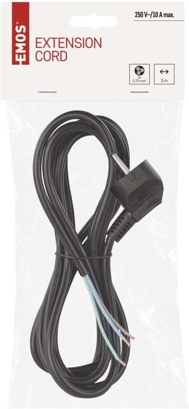 Emos S18373, flexo šnúra 3m, PVC, čierna, 3 x 0,75mm2