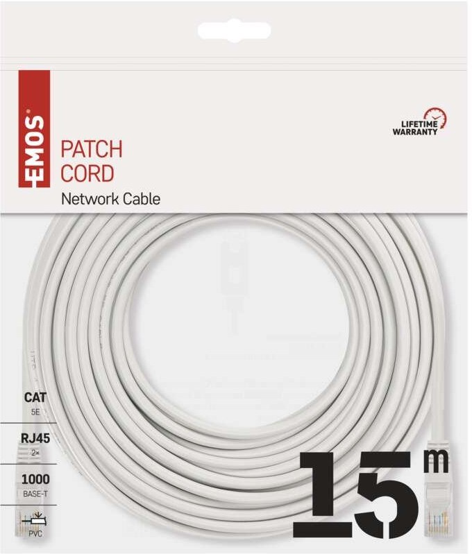 Emos S9127, patch kábel RJ45, cat5e, UTP, 15m, sivý
