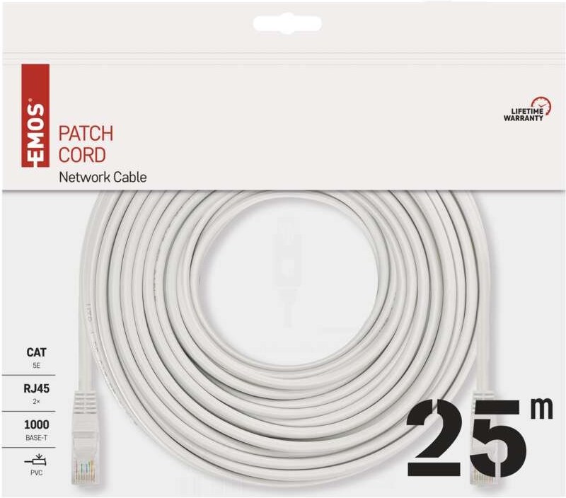 Emos S9130, patch kábel RJ45, cat5e, UTP, 25m, sivý