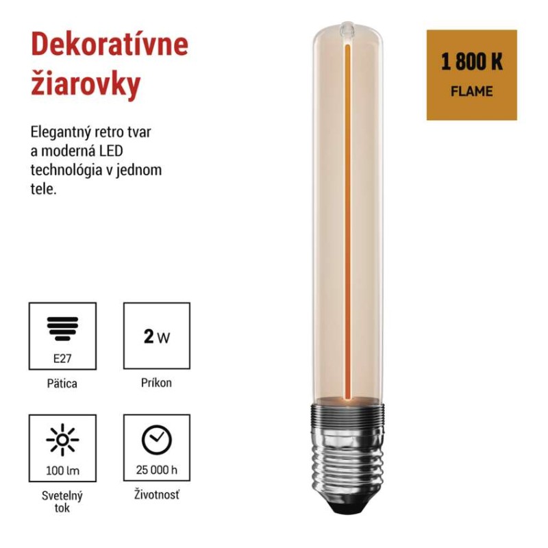 LED žiarovka DECO T30, E27, 2 W (11 W), 100 lm, flameZobraziť viac