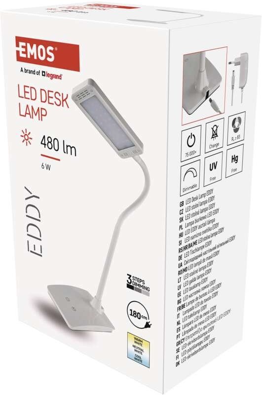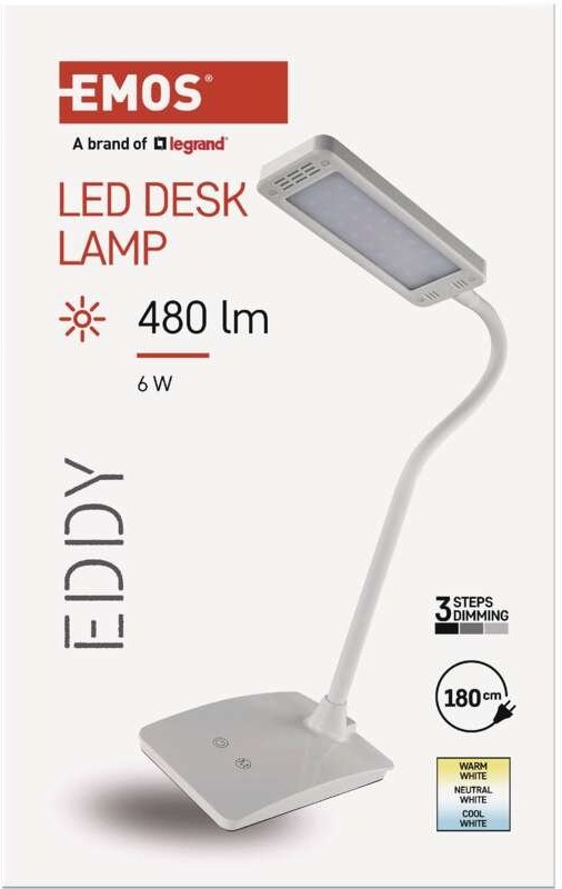 Stolná lampa EDDY prináša do vášho priestoru špičkové osvetlenie v dvoch moderných farbách - čiernej alebo bielej. Vďaka 6 W a 24 výkonným LED diódam poskytuje svetlo s intenzitou až 480 lm.Stolná lampa EDDY je skvelým doplnkom vášho pracovného stola alebo nočného stolíka a poskytuje vám dokonalú kontrolu nad osvetlením v každej situácii. Elegantný dizajn a funkcie lampy EDDY vám pomôžu vytvoriť ideálnu atmosféru v každej chvíli.