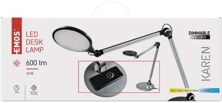 Elegantná LED stolná lampa KAREN je ideálnym kandidátom do moderného interiéru. Lampa vyniká nielen mimoriadnou variabilitou z konštrukčného hľadiska, ale tiež ideálnou intenzitou a farbou poskytovaného svetla. Za zmienku stojí rovnako možnosť bezdrôtového nabíjania telefónu a plynulého stmievania.Príjemnejšie pracovné prostredie vo dne v noci