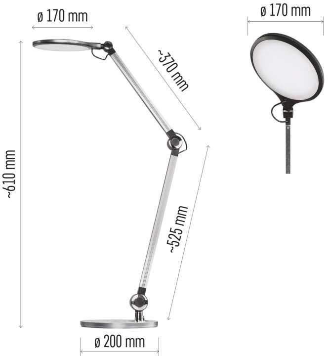 LED stolná lampa, polohovateľné dvojité rameno, dotykové ovládanie, voliteľná farba svetla, plynulé stmievanie, príkon 9,2 W, rozmer 200 × 550 × 700 mmZobraziť viac
