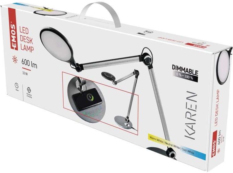 Možnosť vybrať si obľúbenú farbu svetla je dnes už takmer samozrejmosťou a lampa KAREN nie je výnimkou! Zmena farby svetla je možná v 3 krokoch (teplá biela – relax, neutrálna biela – čítanie, studená biela – práca). Lampa je tak nepostrádateľným pomocníkom nielen pri práci na počítači, ale patričné využitie nájde aj pri rôznych kreatívnych aktivitách, štúdiu alebo odpočinku.Lampa, ktorá hravo nabije váš telefón