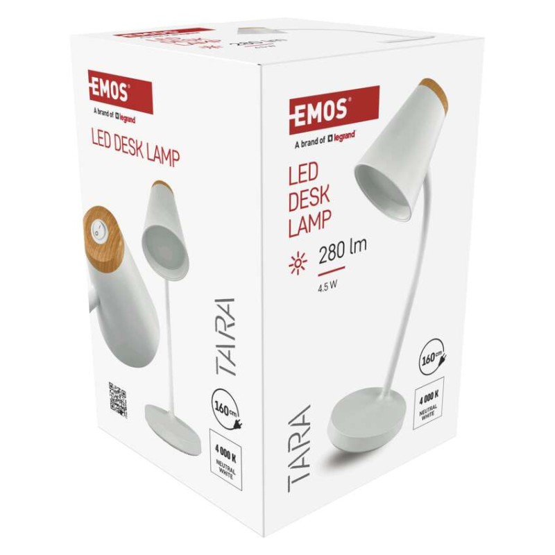 Stolná lampa EMOS TARA je dokonalou kombináciou moderného štýlu a jemného prírodného prvku. Jej minimalistické línie dopĺňa dekorovanie imitáciou dreva, ktoré celému dizajnu dodáva hrejivý, prírodný nádych. Dodáva sa v bielej alebo čiernej farbe, takže ľahko zapadne do každého interiéru - od pracovne až po detskú izbu.