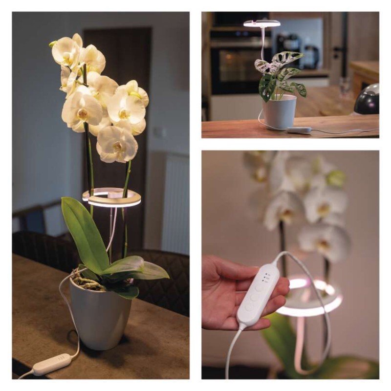 Kruhové osvetlenie je navrhnuté tak, aby mohlo byť umiestnené pod kvetmi rastliny a jemne ich osvetľovalo zdola smerom k listom a stonkám. To poskytuje rastlinám dostatok svetla na rast bez priameho prehriatia alebo poškodenia citlivých kvetov. Je to preto ideálne riešenie pre orchidey a všetky rastliny s citlivými kvetmi.