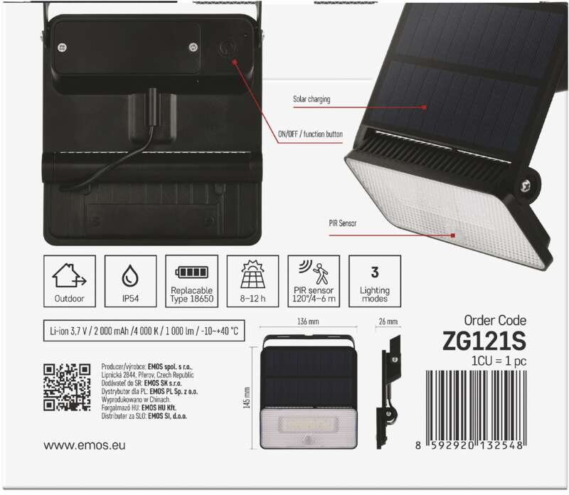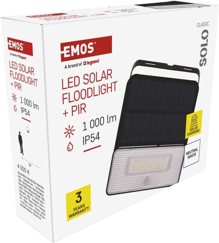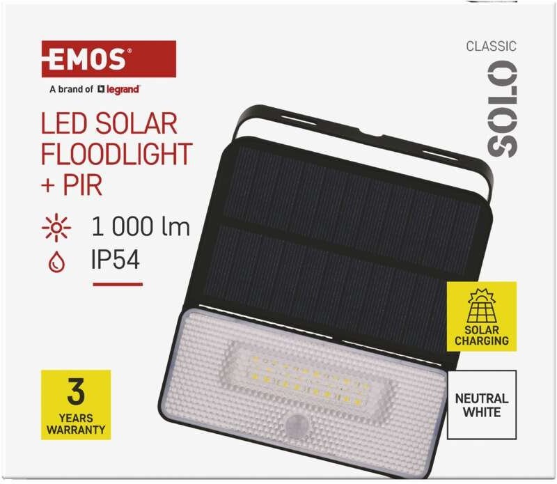 Emos ZG121S SOLO, solárny LED reflektor so senzorom pohybu, neutrálna biela