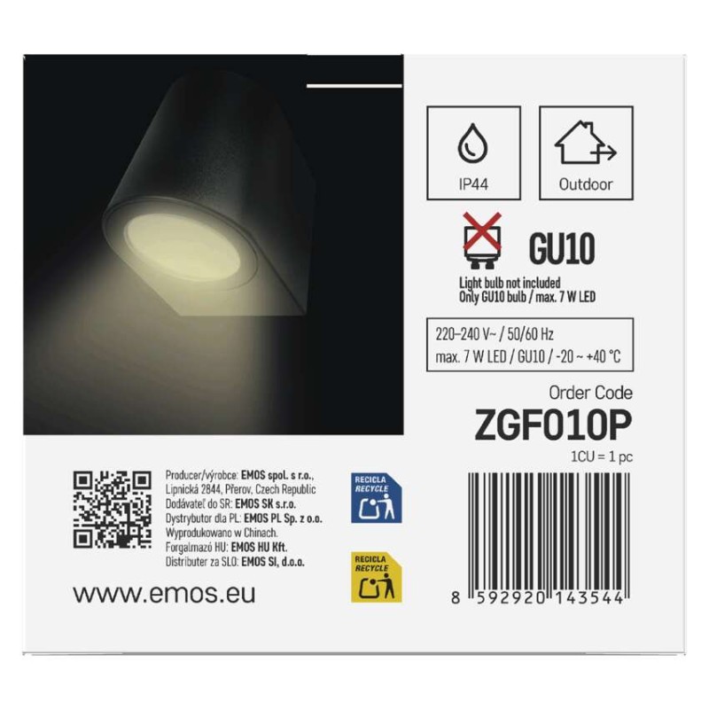 Emos ZGF010P, záhradné nástenné svietidlo OCULUS, 8,8 x 6,7 x 8 cm, 1 x GU10, 35 W