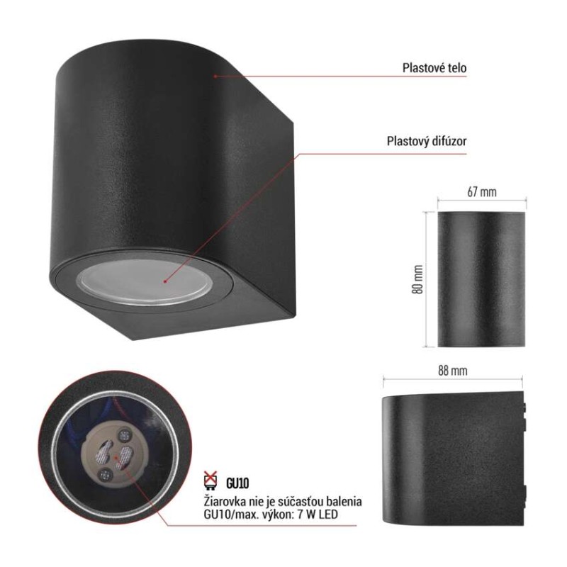 záhradné nástenné svietidlo OCULUS, 8,8 x 6,7 x 8 cm, 1 x GU10, 35 WZobraziť viac