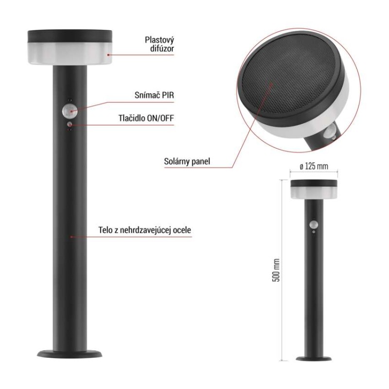 svietidlo, teplá biela, solárny panel s Li-Ion batériou 3,7 V/1 200 mAhZobraziť viac
