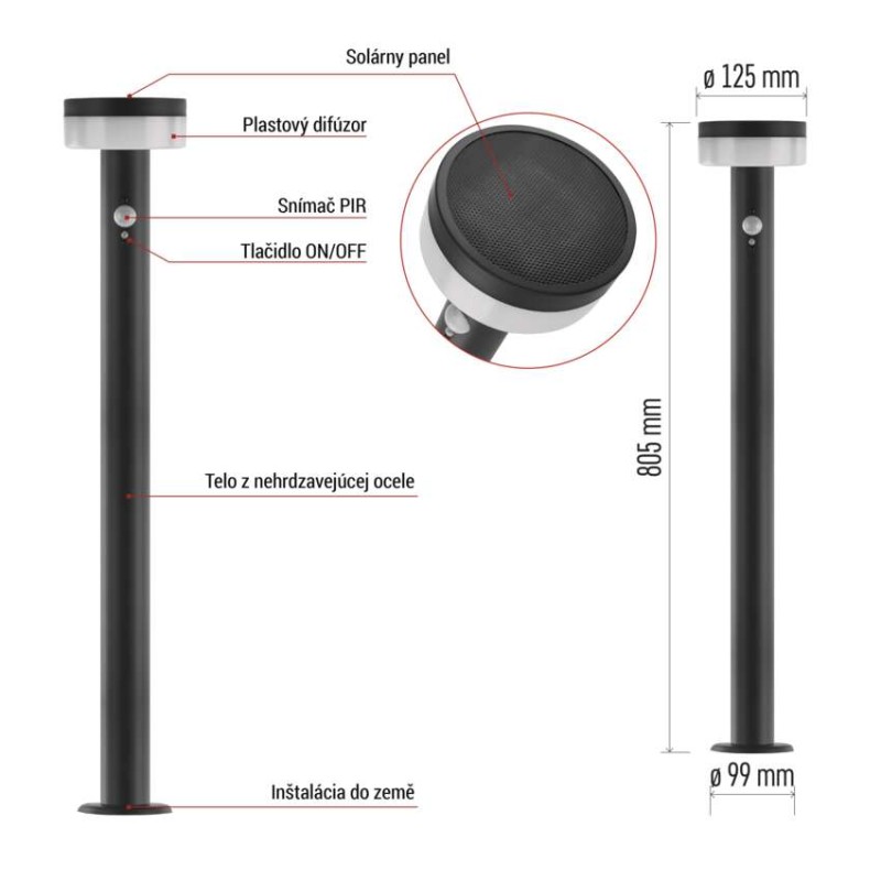 solárne napájanie - žiadne káble, nulové prevádzkové náklady