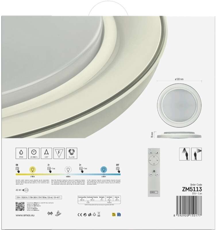 Emos ZM5113 REMI, LED prisadené svietidlo, kruhové 45W, stmievateľné so zmenou CCT