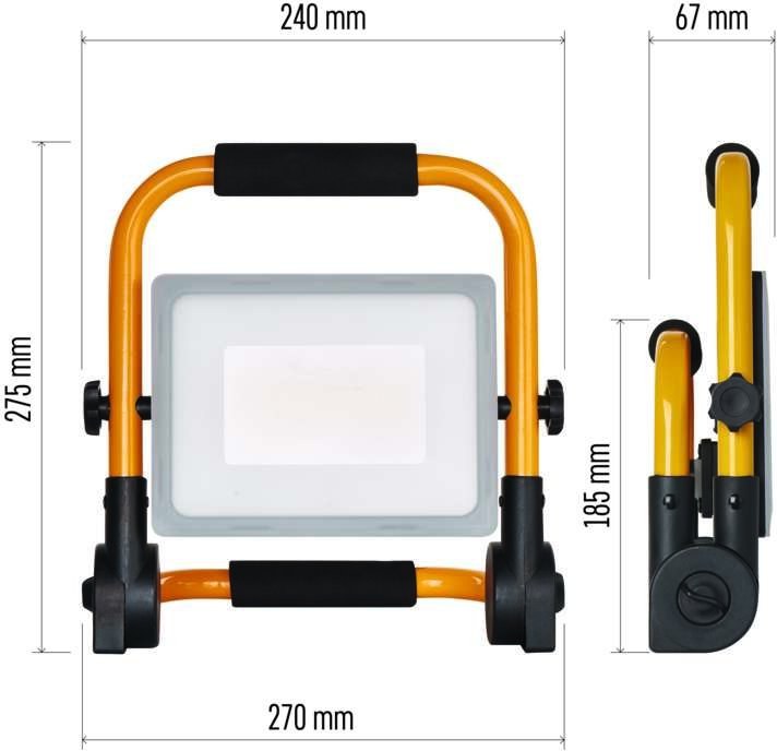 Dômyselne navrhnutá rukoväť a skladacia konštrukcia uľahčujú prepravu reflektora. Praktický nastaviteľný stojan umožňuje nasmerovať telo reflektora a svetelný výkon presne tam, kde ho pri práci najviac potrebujete.
